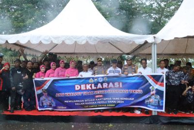 SIDRAP, KORANMAKASSAR.COM — Kepolisian Resos Sidrap Polda Sulsel melalui Satuan Lalu Lintas Polres Sidrap dan Komunitas Otomotif gelar Deklarasi Zero Anti Knalpot Tidak Sesuai Spektek di Plataran Monumen Ganggawa, pada Rabu 7/2/2024. Pagi