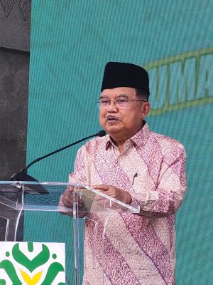 “Kita memulai dari masjid karena kita ingin, umat Islam tidak selalu berada di bawah, tapi bagaimana mengangkat agar bisa pada tingkat produsen,” imbuh JK.