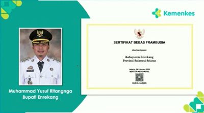 ENREKANG, KORANMAKASSAR.COM — Pemerintah Kabupaten Enrekang menerima sertifikat Bebas 2025 Frambusia dari Kementrian Kesehatan, Rabu, 20 Agustus 2025. Penyerahan ini dilakukan secara daring.