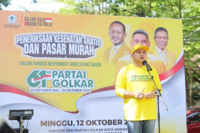 MAKASSAR, KORANMAKASSAR.COM – Memperingatan Hari Ulang Tahun (HUT) ke-61 Partai Golkar, jajaran pengurus DPD II Partai Golkar Kota Makassar, dipimpin Munafri Arifuddin, mengadakan kegiatan sosial berupa pasar murah dan pemeriksaan kesehatan gratis sebagai bentuk kepedulian kepada masyarakat.
