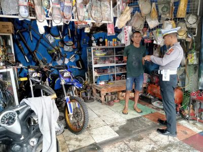 Kegiatan sosialisasi dilakukan dengan cara mendatangi toko dan bengkel sepeda motor sebagai upaya pencegahan terhadap penggunaan knalpot Brong yang dapat menghasilkan suara bising di jalan raya.
