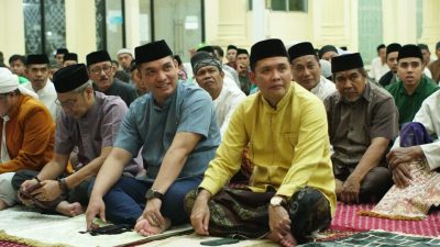 TAKALAR, KORANMAKASSAR.COM — Bupati Takalar Ir. H Mohammad Firdaus, MM Daeng Manye bersama Wakil Bupati Takalar Dr. H. Hengky Yasin, S.Sos., M.M., melaksanakan Shalat Tarwih perdana bersama masyarakat Takalar di Masjid Agung Takalar pada Senin (3/3/2025) malam.